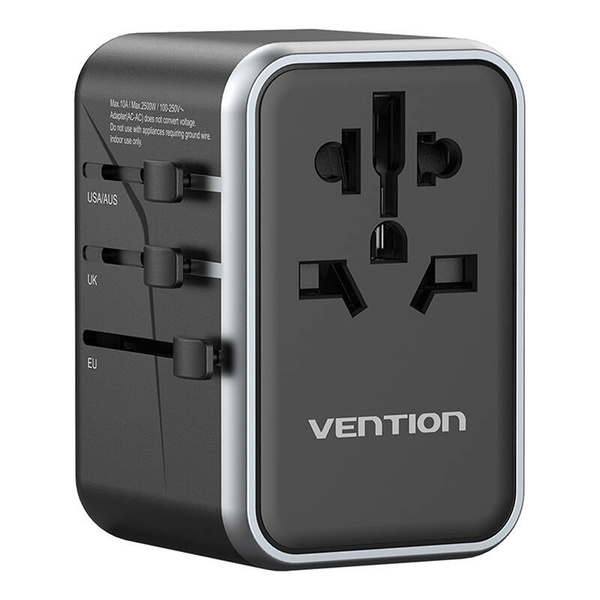 Adapter podróżny uniwersalny 65W Vention FJFB0 GaN 2xUSB-C 2xUSB-A (czarny)